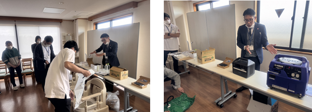 今回は、いつ災害が訪れてもご利用者の生活を守っていくことができるよう、災害備蓄品の使用方法や、業務優先度等について施設長からスタッフに向けて研修が行われました。参加したスタッフの中には、初めてこれらのアイテムに触れた人もいたため、有事の際にすぐ使うことができ、良い学びになりました!